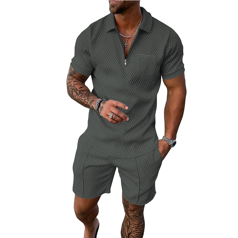 Men’s 3D Hexagonal Texture Lounge Set | Monochromatic Commuter Suit with Zippers